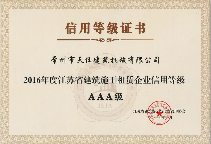 Jiangsu quality integrity five star enterprise